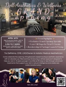 Doll Aesthetics and Wellness April 16 @ 5:00 pm - 7:30 pm Screenshot Add to calendar Google Calendar iCalendar Outlook 365 Outlook Live Details Date: April 16 Time: 5:00 pm - 7:30 pm Doll Aesthetics and Wellness 2861 Placida Rd Unit A Englewood, 34224 United States + Google Map Phone: 941-393-3767 Website: View Venue Website Previous event Gasparilla Grande Slam Back Bay Next event Worlds Richest Tarpon Tournament
